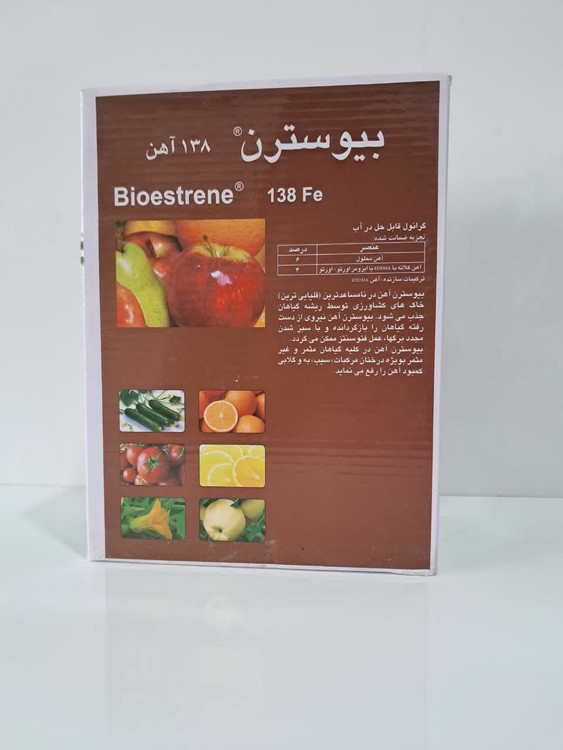 در میان عناصر ریزمغذی، آهن عنصری کلیدی در تغذیه محصولات مثمر محسوب میگردد. آهن با بهبود وضعیت کلروفیل، انتقال الکترون در فتوسنتز و فعالنمودن آنزیمهای مربوط با فتوسنتز، ضمن تولید کربوهیدرات بیشتر، منجر به بهبود عملکرد میگردد. کمبود این عنصر در خاکهای آهکی و pHهای بالاتر از 7 بیشتر بروز مییابد؛ فرم کلات EDDHA، مؤثرترین فرم آهن برای مصرف خاکی (بویژه در خاکهای قلیایی ایران) است. آهن بیوسترن بدلیل دارا بودن ترکیب موزون و متعادل از دو ایزومر ارتو - ارتو و ارتو - پارا کمبود آهن در گیاهان را سریع و برای مدتی طولانی برطرف مینماید.